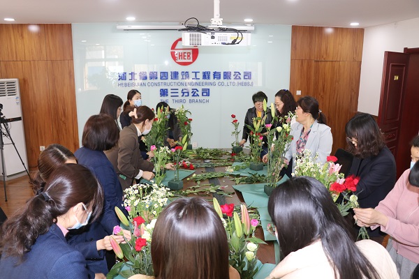 “第一次自己动手插花,我向你们好好学学……”大家有的忙着挑选花枝,有的在一旁边看边学。平时忙于工作,此时此刻都全身心地投入到插花活动中,大家发挥想象力,修剪花枝、整理花朵、构思插花位置。一会儿时间,普通的花叶、枝条,经过大家精巧的修饰与绑扎之后,一捧捧绚烂而生动的花篮河北四建呈现在眼前,令人赏心悦目,大家捧着自己亲手制作的河北四建,脸上洋溢着满满的幸福。
